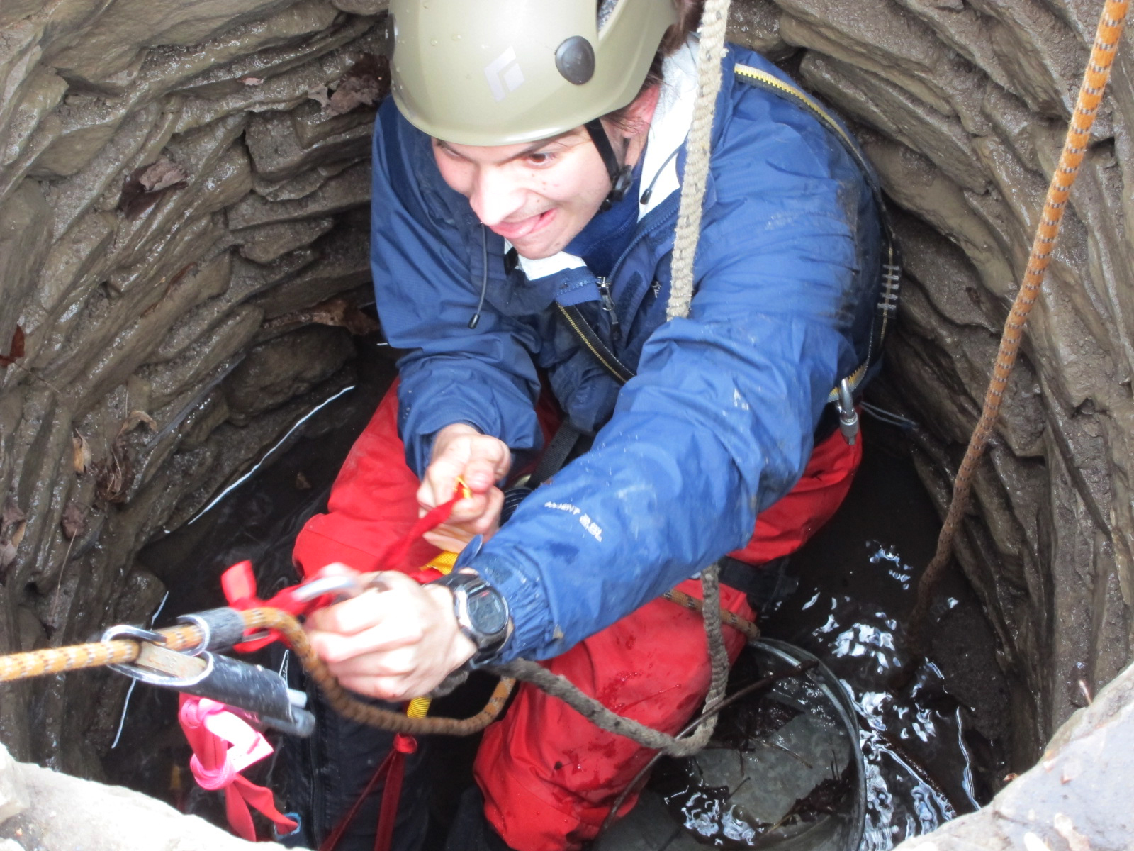 Excavating earth and rocks in well