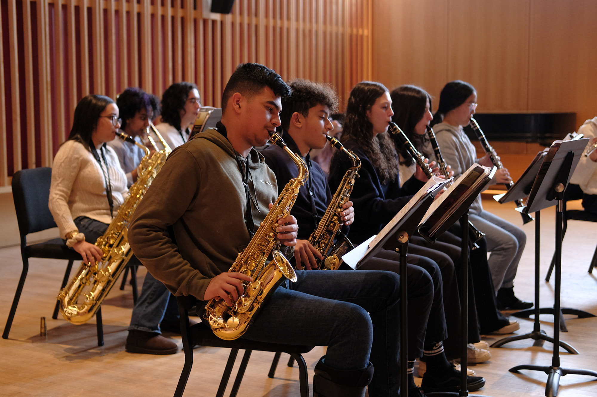 Photo: The chamber music ensemble from Yonkers High School visited Bard College to meet with Bard Conservatory students as part of the Musical Mentorship Initiative, a CCE Trustee Leader Scholars (TLS) program. Photo by Nour Annan HRA ’23