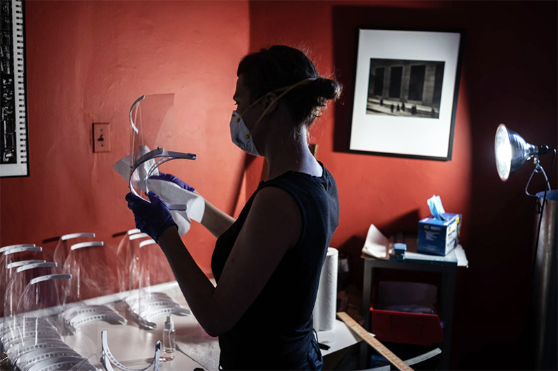 Bard MFA alumna Luba Drozd has been working around the clock to make face shields for New York City hospitals in dire need of protective equipment during the COVID-19 emergency. With the help of a team of volunteers for distribution, she has been able to get nearly 200 masks to health care professionals in the city.