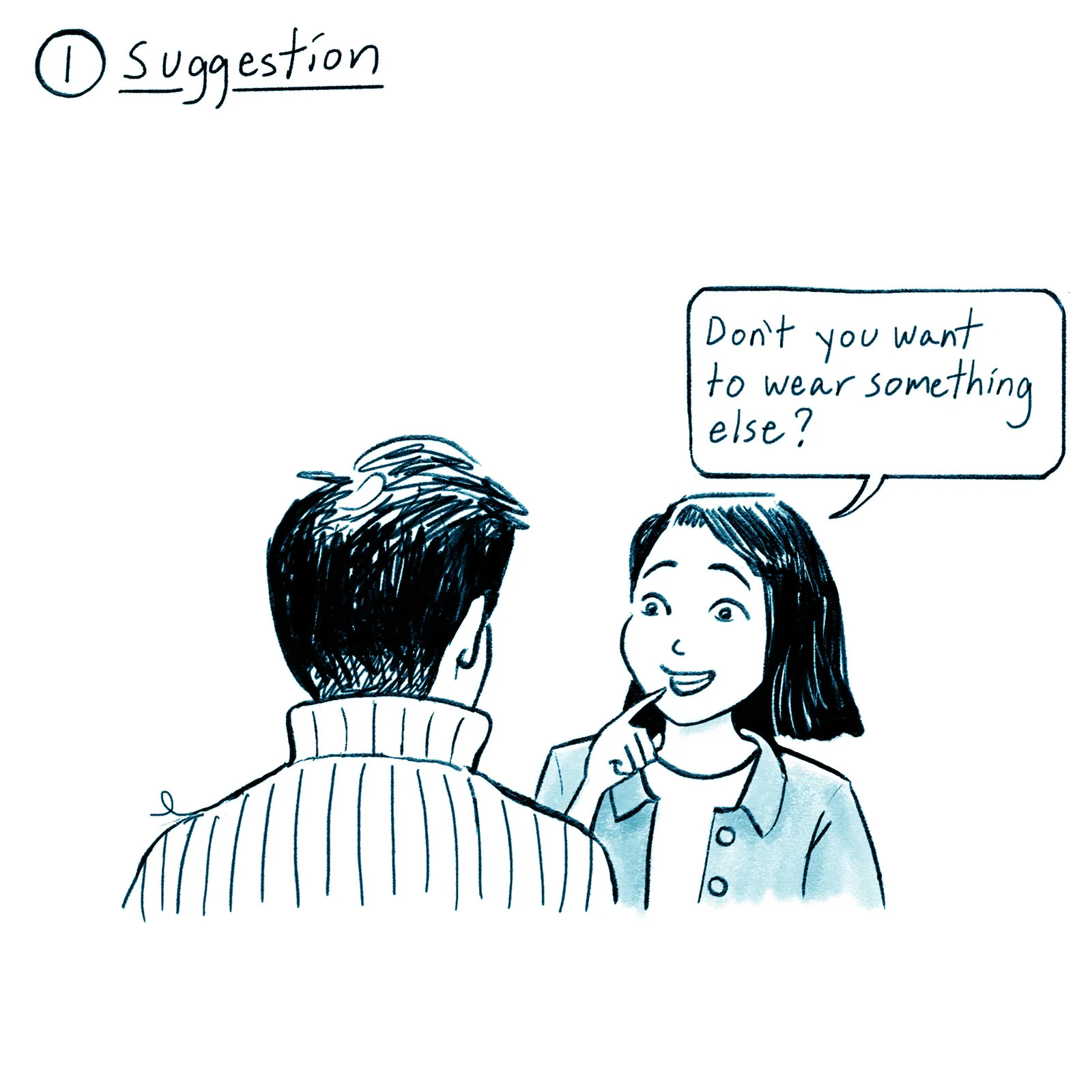 First panel of “How to Disappear Your Partner’s Ugly Sweater” by Nguyên Khôi Nguyễn ’04. Image courtesy the artist