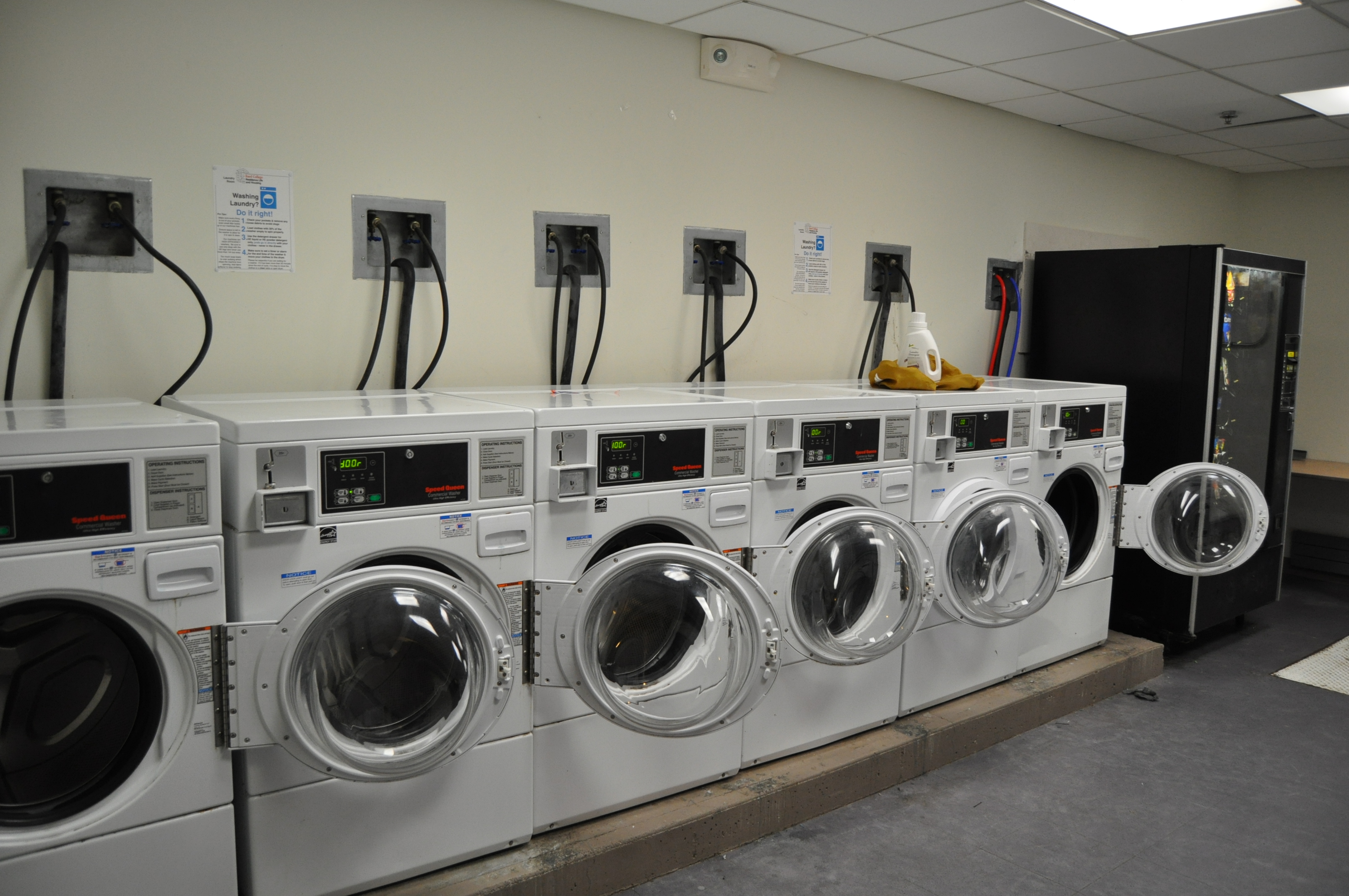 Our laundry rooms are furnished with machines owned and operated by a local laundromat. This company maintains our machines regularly and responds to any issues reported to Buildings and Grounds via the service request form linked below. To be a great neighbor, leave a note on any machine you experience issues with so that others are aware that a service request has been filed. -